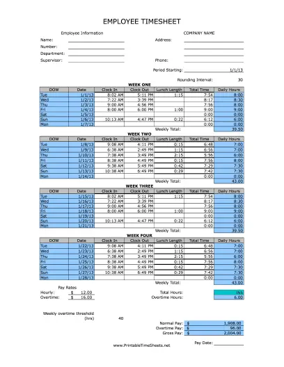 Printable Time Sheets