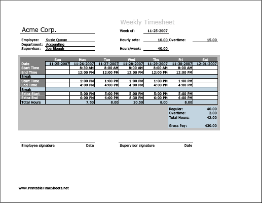 The spreadsheet version can be customized with your company name, employee name, hourly wage, etc. You can pay using your PayPal account or credit card. You'll be able to download the customizable timesheet within moments.